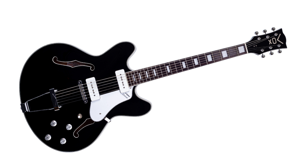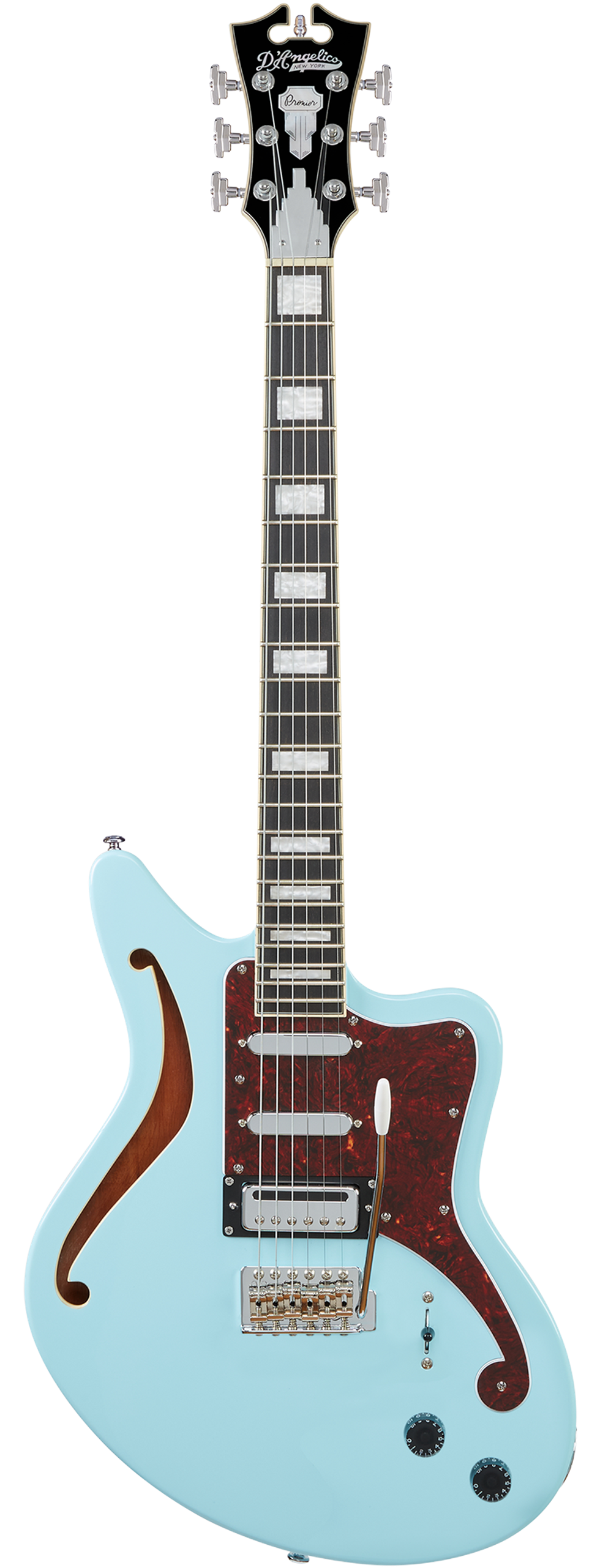 The Bedford SH—previously only offered as a Deluxe Limited Edition model—is now available in the Premier Series. Featuring a sleek, modern f-hole design on the upper bout, the Bedford SH integrates a warm acoustic element into a three-pickup electronics configuration that offers a bold variety of tones. The combination of two Duncan Designed single-coils in the neck and middle positions followed by a Duncan Designed mini-humbucker in the bridge creates a uniquely bold, but familiarly spanky tonal palette while a 5-way blade makes tone selection simple. Available in Oxblood, Black Flake and Sky Blue with a six-point tremolo.