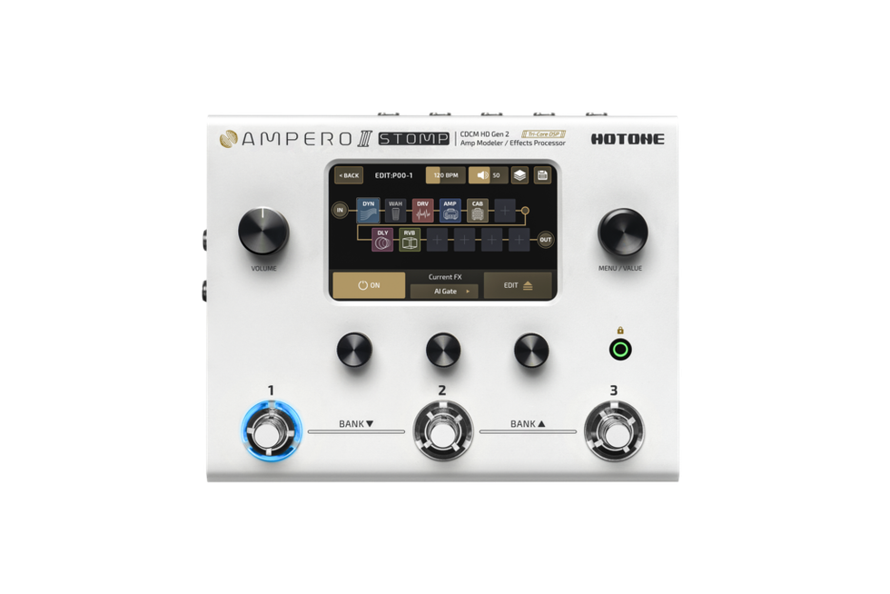 The gain stage is designed to not just clip the signal giving great rock through to metal tones, it's also designed to bring out the sparkle and harmonics of your guitars natural tone. This is due, in part, to the extremely high end hi-fi audio components used.