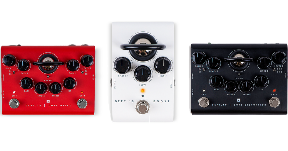 Dept. 10 is the Blackstar R&D team responsible for blue sky innovation and design; they have developed the world's most advanced valve pedals. Dept. 10 pedals all use an ECC83 triode valve at their heart, running at more than 200V internally which allows them to deliver organic tone, dynamics and break up. Innovative design, premium components and our advanced Cab Rig D.I. technology, create the ultimate valve pedals. The Dept. 10 Dual Drive and Dual Distortion pedals both offer two channels, each with two available voices, as well as important features for modern guitarists such as USB audio out for direct recording. And the Dept. 10 Boost's built-in buffer / line driver is perfect for preserving your tone when using long cables, or large pedalboards, or for pushing your amp into further saturation.