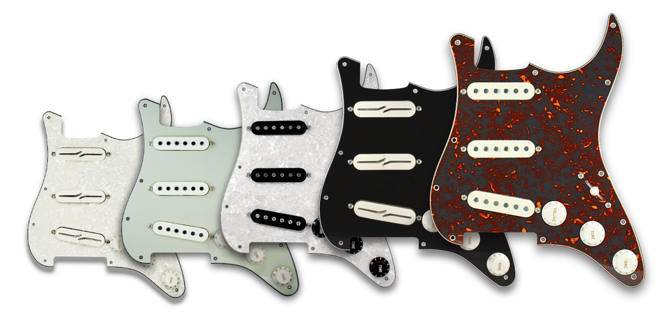 Don't just settle for some one-size-fits-all generic pickguard. Instead, design your own! Lindy Fralin's Prewired Strat Pickguard line features the highest quality parts - and pickups - in the industry. Built to order and wired by hand by experienced craftsmen, these Prewired Pickguards are available in SSS and HSS combinations. In addition, each pickguard is fully customizable - from appearance to pickups to the wiring. With hundreds of options available, you can fully customize your tone - from our award-winning pickups to cutting-edge push-pull mods. So treat your Strat® to something special this holiday season with a Lindy Fralin Prewired Pickguard - exclusively available at fralinpickups.com.