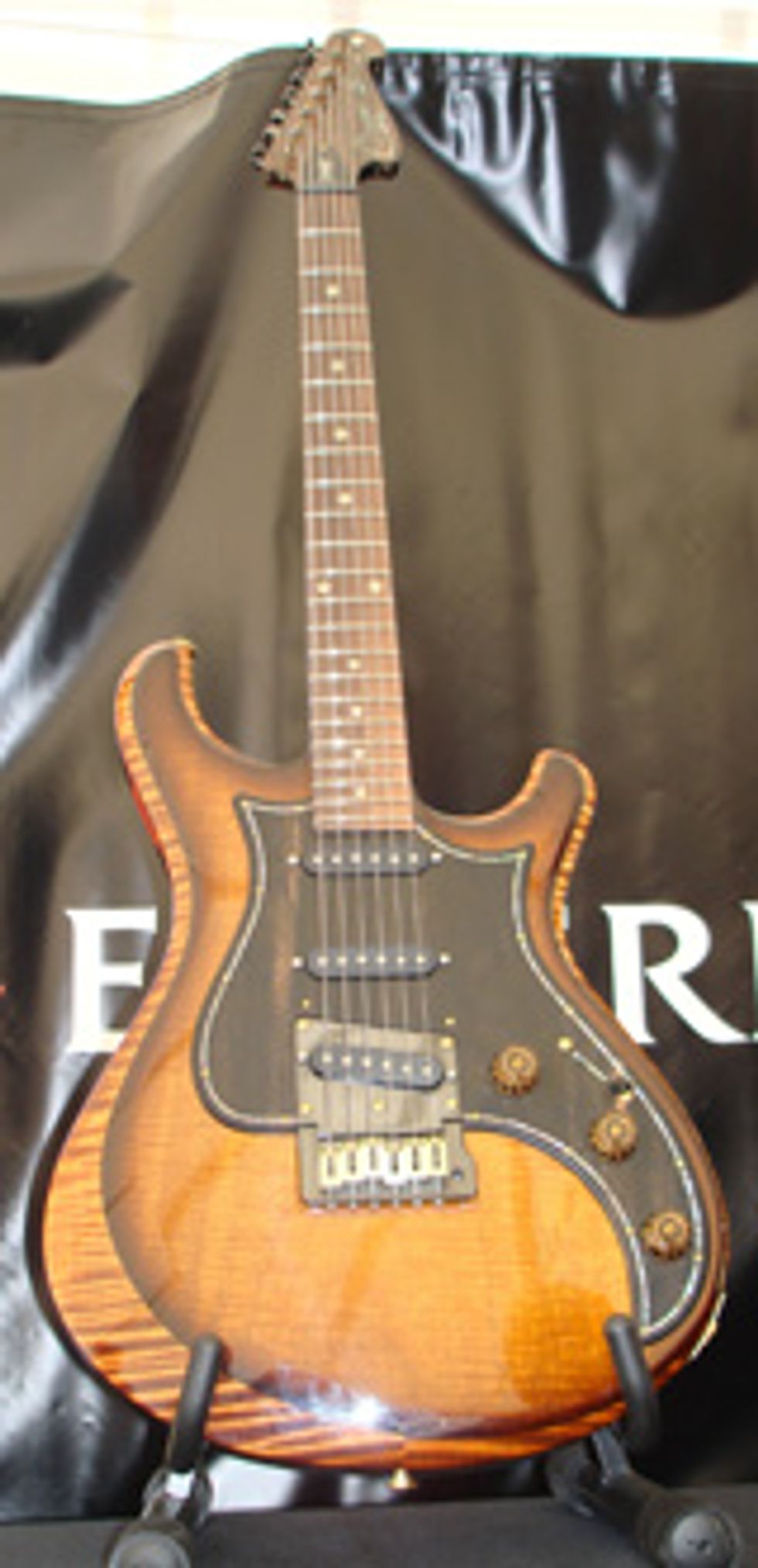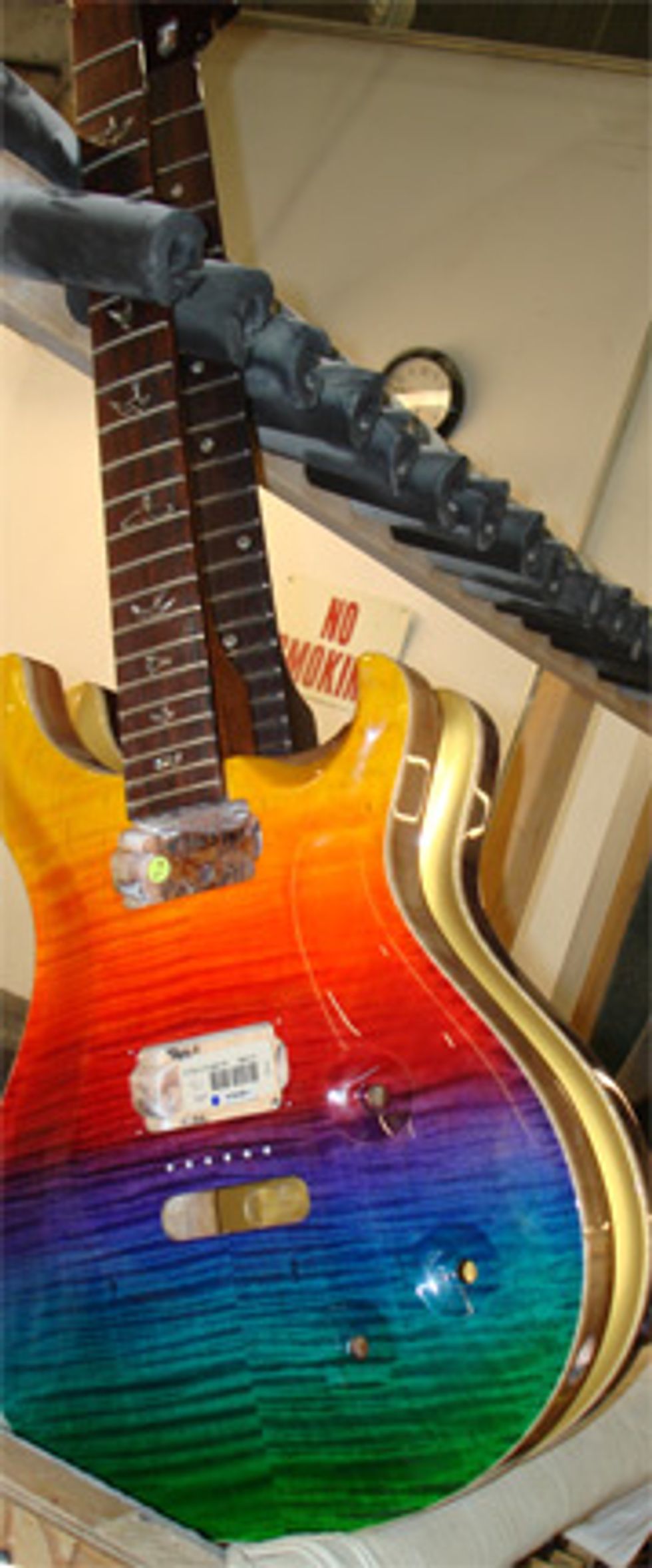 | Al Di Meola Prism Aesthetically, Al Di Meola’s new Prism guitar is a clear departure from what you’re used to in a PRS. Think the prism-inspired color scheme is bold? Just wait until you see it in person. It’s even brighter than you think with mesmerizing curly maple “9 Top” that threatens to hypnotize even when Al D isn’t playing it. The guitar’s 5708 pickups are tweaked for Al’s bright sound. • 25" scale • Stained curly maple "9 top” • Mahogany back • Custom Al Di Meola neck carve (wide fat) • 22 fret Mexican rosewood fingerboard • Grommet-style locking tuners • Abalone bird inlays • Tremolo bridge • 1957/2008 pickups • New DuPont Finish | Modern Eagle II A few different design and finish features bring PRS’ flagship guitar to another level. Its neck and fretboard are made with Dalbergia, which the company calls “black rosewood,” which is finished with a new buff-out process. • 25” Scale • Stained Modern Eagle grade curly maple top • Special lightweight mahogany back • Wide fat Dalbergia neck • 22 fret Dalbergia fretboard • Special bird inlays with iridescent paua heart centers • Combination of gold and nickel hardware • Stop tailpiece or tremelo bridge • 1957/2008 pickups with 1950s wire supply • High gloss, shatter-hard Nitro finish in Faded Blue Jean, Charcoal, Red Tiger, Yellow Tiger • Special Modern Eagle case | The Starla Think of the Starla as a single cut Mira—a very basic guitar with a retro vibe, including a pickguard and a Bigsby. Its new treble and bass pickups are inspired by the old Filtertron design but updated with PRS Alnico magnets. • 24 1/2” Scale • Solid mahogany body • Solid mahogany neck • 22 fret rosewood fingerboard • Dot inlays, birds optional • Nickel hardware, vintage style tuners • Bigsby B5 tailpiece with Grover Tune-O-Matic bridge • Starla Treble and Bass pickups • 3 way blade • Vintage Cherry, Vintage Mahogany, Vintage Orange or Black • High gloss finish |