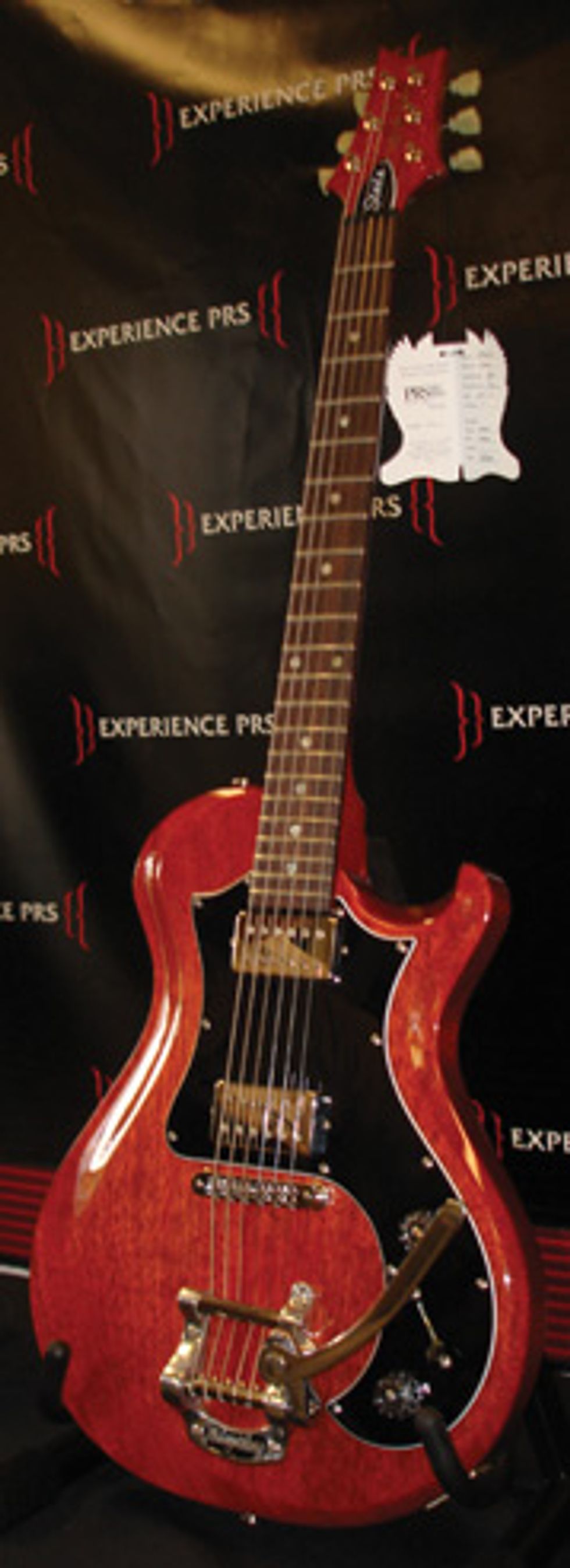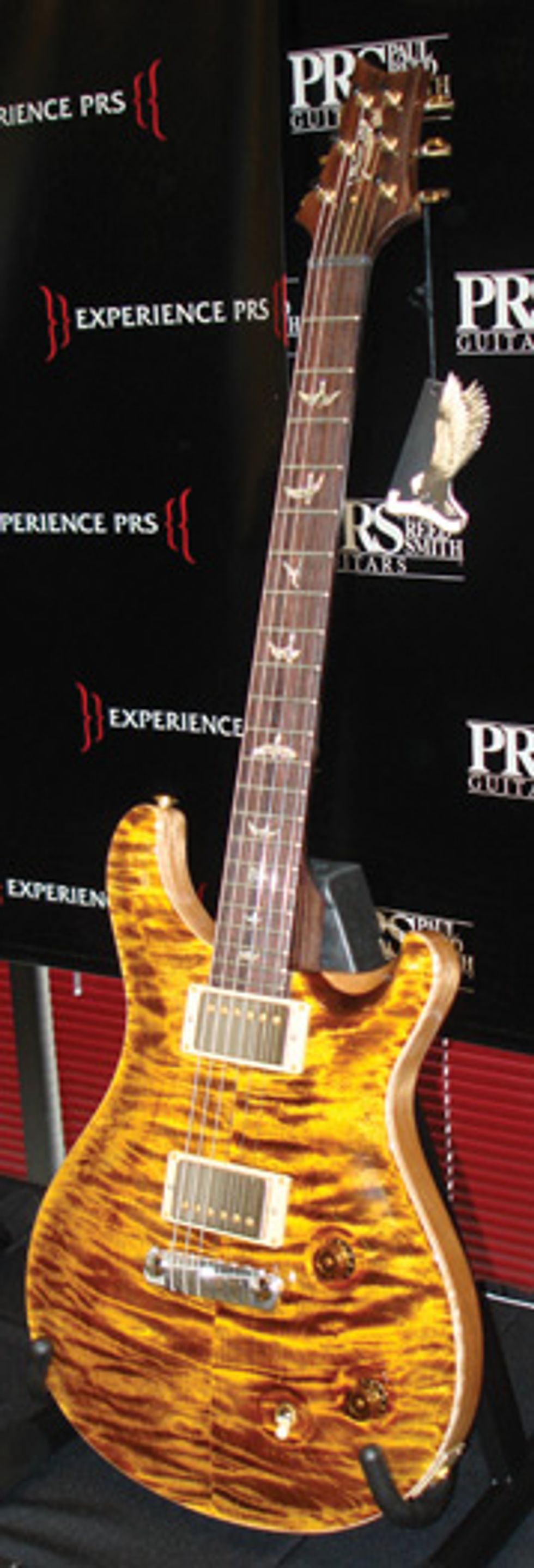 It was the new gear, however, that truly stood out at the event. PRS officially released three guitars: the Starla, the Al Di Meola Prism and the Modern Eagle II. PRS also announced a limited run of three guitars decked out with the company’s new 1957/2008 pickups: the SC 245, the Custom 24 and an old-style McCarty. The 1957/2008 pickups, or the 5708s as they are already being referred to, are engineered for vintage tone. During a media briefing, PRS Director of Sales and Marketing, Peter Wolf, explained that the 5708s in the three limited run guitars were made from exclusively obtained wire that was also used in PAF-era pickups.