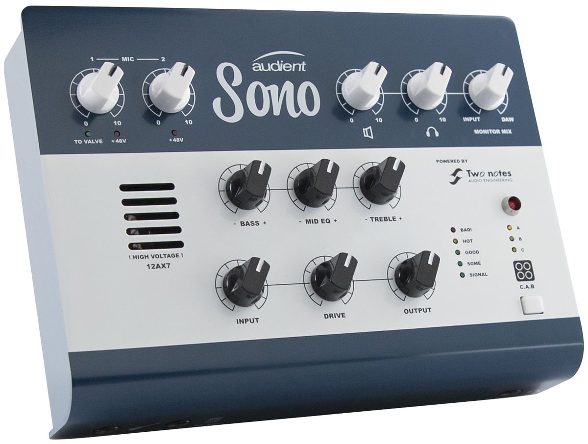 The Sono, from U.K. manufacturer Audient, is a desktop recording interface augmented with a raft of guitar-friendly features. It’s not the first recording preamp designed for guitarists (Millennia’s $2,518 TD-1 springs to mind), but, as far as I know, it’s the only such device selling for under $500.