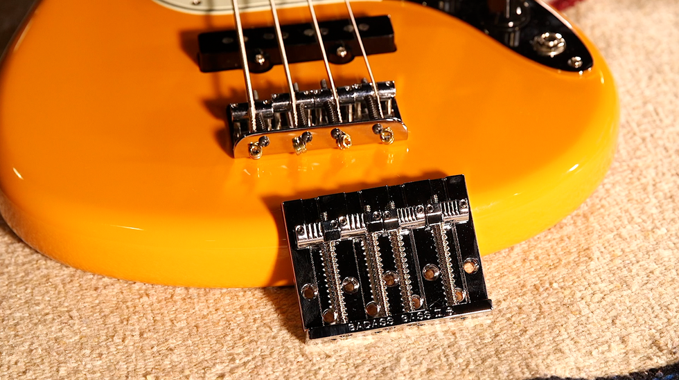 Since then, the Badass Bridge (Fig. 1) became a popular replacement for many instruments because of its ease of use, high mass, reputed improved intonation, and heavy ’70s vibes. They were so commonly installed on Fender basses that the Badass II was released as a direct-fit replacement so installation could be performed by anyone so inclined. Let me show you how easy it is as I swap out the bridge on a Fender Mustang bass.