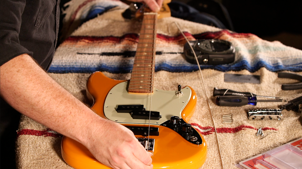 Follow along step-by-step with tech Marshall Dunn as he installs a Leo Quan Badass Bridge on a Fender Mustang bass.