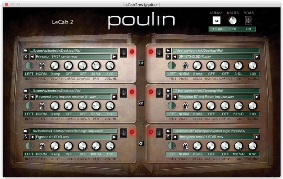 Fig. 4. — A screenshot of the Poulin LeCab 2 plug-in running six clean amp IRs, as heard in Clip 14.