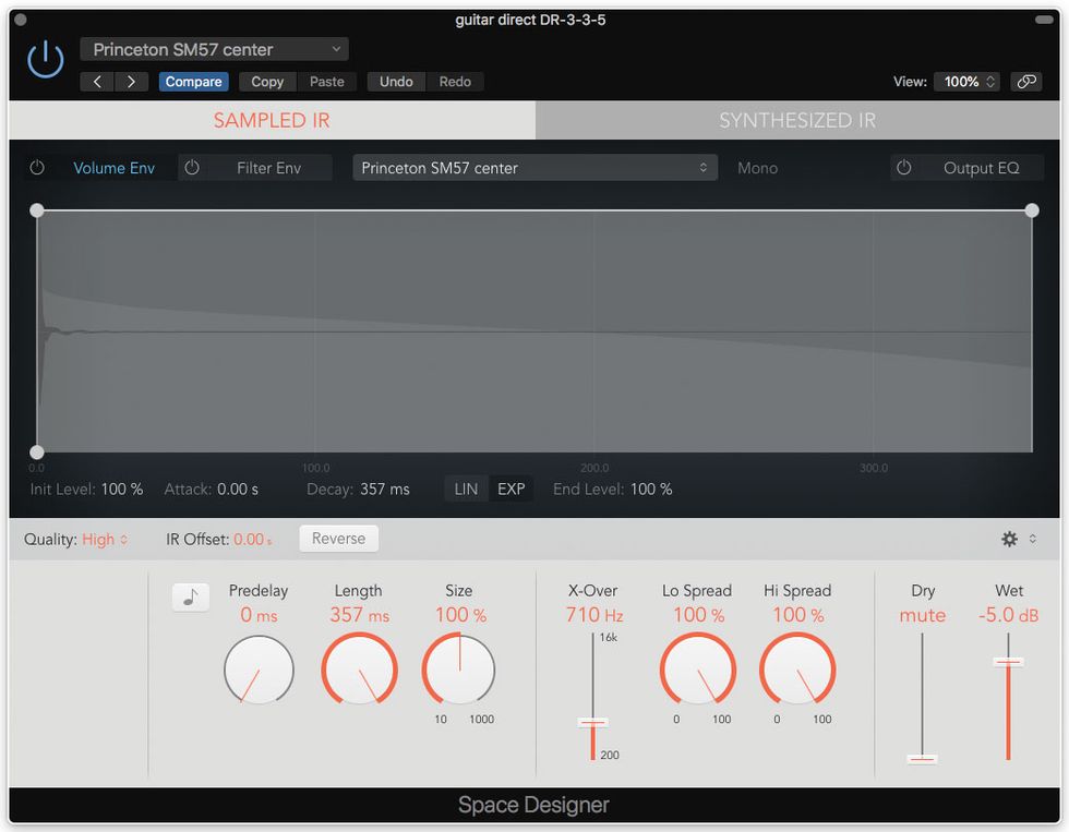 Fig. 9 — Logic Pro X Space Designer with an IR of a Princeton Reverb amp. Note: Dry fader is set to zero.