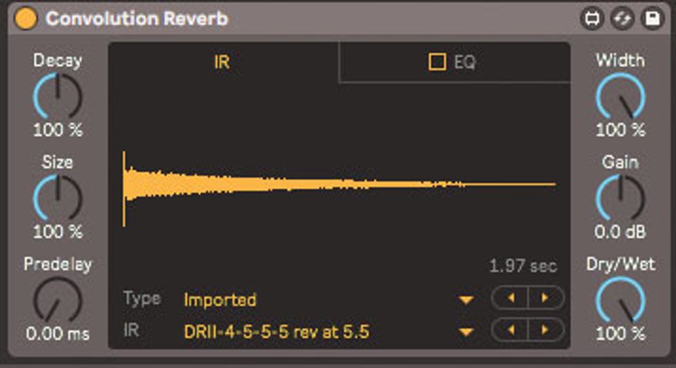 Fig. 11. — Ableton Live’s Convolution Reverb with a Deluxe Reverb II IR. Note that the Dry/Wet knob is set to 100-percent wet.