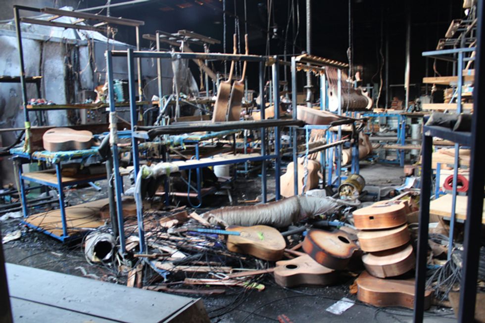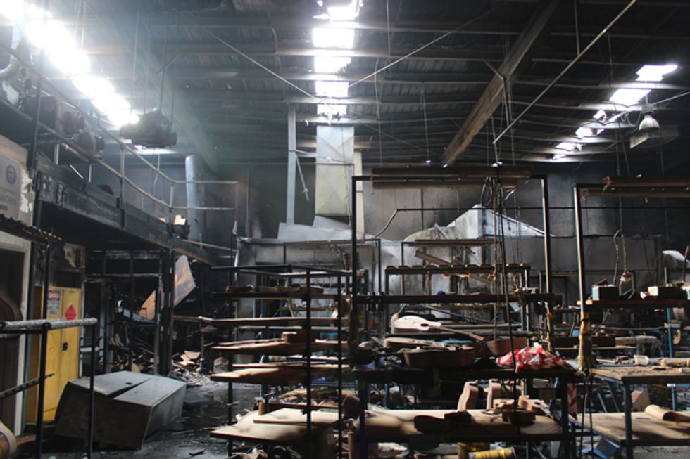 Melbourne, Australia (August, 2013) -- On Tuesday, August the 27th, Cole Clark Guitars, located in Melbourne, Australia, experienced a major fire. The outbreak which started in the paint shop and moved throughout the entire rear factory completely destroying a large amount of inventory, the set up shop, drying kilns, a five axis CNC router, all the band saws, cutters, sanders, and the climate control system. The building has also been structurally compromised and the damage is well into the millions of dollars.