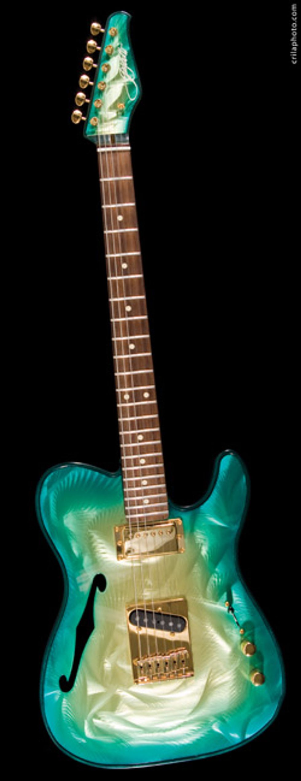 Next, I ran the GT Custom through a Fuchs Blackjack 21 in full crunch mode. Wow! And I mean, wow! The GT Custom was fat and punchy, with each pickup retaining its own distinctive character. As with the Zemaitis Tribal Tattoo, the Gigliotti GT Custom was remarkably resistant to feedback, even when I kicked on an Xotic AC Booster for some added smack down. It was also nice to know that when the neck pickup began to sound just a tad woolly, I could kick in the bridge pickup for just a little more cutting tone—a real plus for live situations.