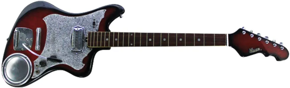 They were primarily known as a maker of clarinet and saxophone reeds, but during the guitar boom of the mid-’60s, all sorts of musical instrument companies were importing electric guitars. Either way, the Maier variation follows the familiar blueprint of a single-pickup guitar powering a tiny amp through a 3" speaker.
