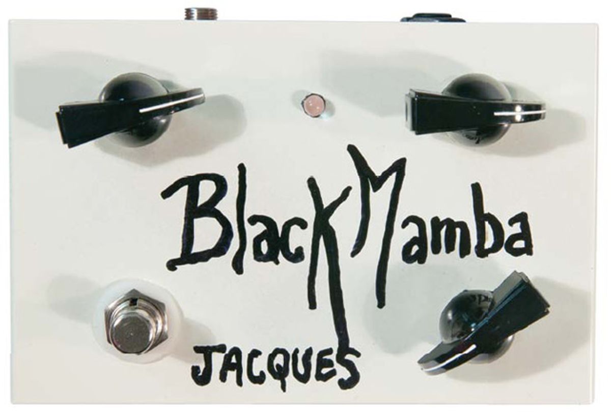 France’s Jacques Effects enjoys the distinction of being among the most highly regarded boutique pedal makers outside of the United States. The company’s line of compact, handmade stompboxes are known for their wild tones and over-the-top voicings and are favorites of adventurous players from Reeves Gabrels to Jerry Donahue. Even with that track record, they tout their newest pedal—the Black Mamba Fuzz—as their masterpiece. And its design intent, which is to simulate Jimi Hendrix’s classic Fuzz-Face-and-cranked-Marshall combination, takes aim at one of the holy grails of guitar sound. It’s also likely to be the company’s rarest pedal: With nearly unobtainable new-old-stock NPN Valvo OC141 transistors at the heart of this monster, Jacques will only be able to build five.
