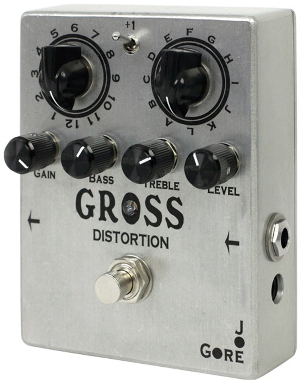 Gore’s independent sensibilities manifest themselves in the pedals he designs and sells under his name. (They are built in Michigan by Cusack Music.) In the case of the Gross Distortion reviewed here, Gore’s irreverence results in a very flexible distortion with an unusual control set. And while it won’t be immediately intuitive for every player, it’s ultimately a very satisfying tool for chasing specific or elusive overdrive, distortion, and fuzz sounds.