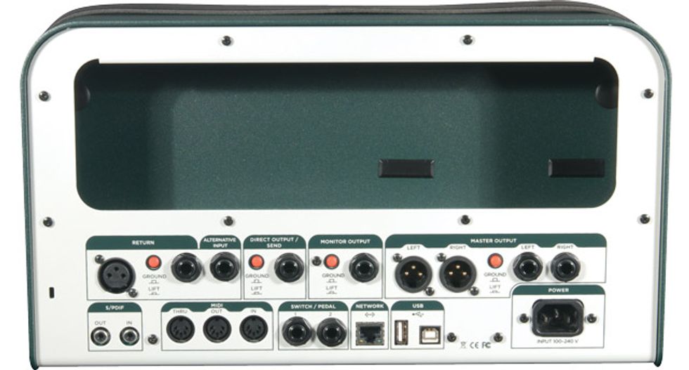 Since the Kemper is essentially a preamp, the device has a couple of options for amplification. For live use, you can run out of two XLR or two 1/4" outs to a PA mixer, or to a separate power amp running into a speaker cabinet (the amp’s cabinet emulation can be disabled for these situations). A dedicated monitor output and S/PDIF input and output jacks round out the audio connections, and a set of MIDI and 1/4" jacks for footswitching offer a wide range of control options. The back panel also sports an RJ-45 jack for network interfacing, along with two USB jacks for updating the firmware and uploading custom rigs from other Kemper Profiling Amp users.