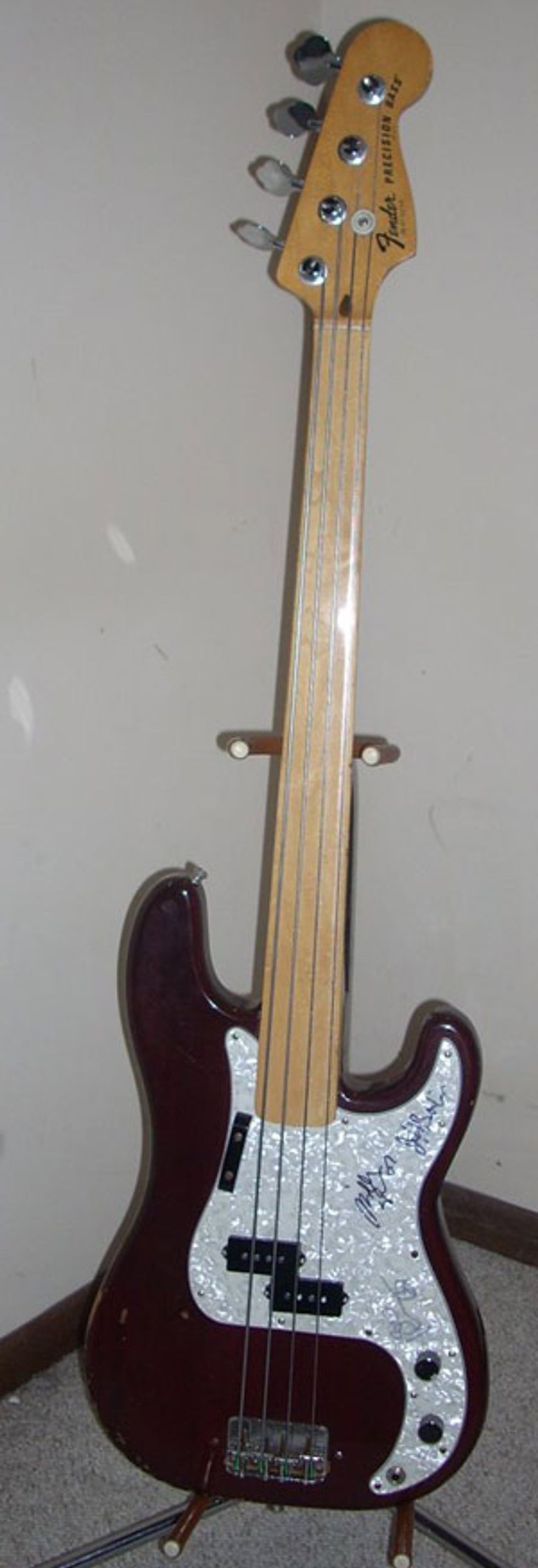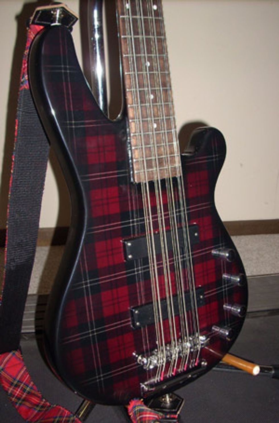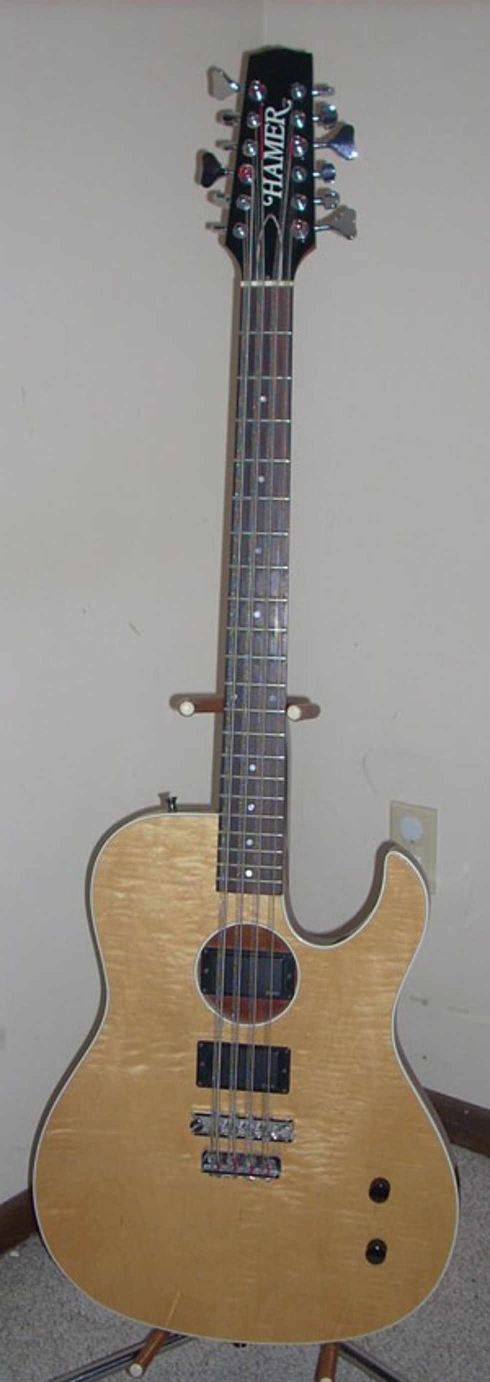 IL, and asked if they would do it. Hamer had a verbal promise, or so we were told, not to duplicate that Dream Police bass, but since Tom wasn't in Cheap Trick anymore they said they would do it, but slightly differently. Hamer made that bass for me and I picked it up in early '86. The following year I met Tom Petersson at a Bun E Carlos Experience show in Rockford, IL. He knew about me getting the bass, or as he put it "some kid ordering a 12 string." He wanted to know why, and I told him I wanted to keep the 12-string legend growing, I thought they were great basses and Jon Brant was no longer playing 12-strings. That summer I met John Entwistle at the '87 NAMM show in Chicago, IL and he remembered my name and the "Quadrophonic bass," as he called it. During that NAMM show Hamer began a production model called the B12A of the Dream Police style 12-string. My bass is the middle child of the Dream Police 12-String Bass legacy. It's different than the original and different than the production model. I still play out live with it every month.