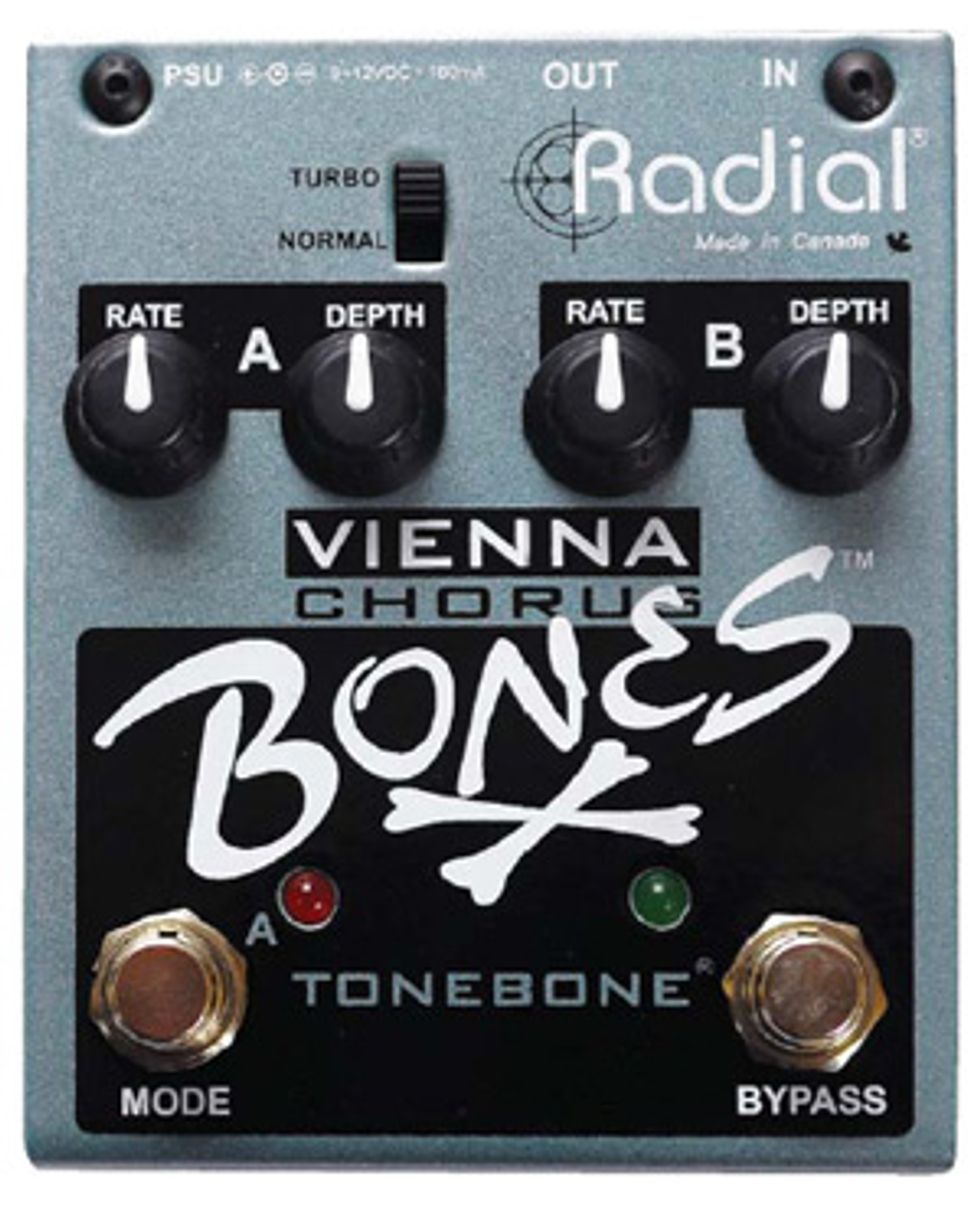 Like any Radial box, the Vienna is a top-quality piece of gear that’s built to handle the road, the stage, and the studio. The pedal’s dual-mode design also makes the Vienna a very flexible effect. You can create everything from a lazy, watery rhythm to radically pulsing and acidic leads in the same song on the fly, without changing any settings. And with a circuit this quiet, it’s a pedal you can use with confidence in almost any musical context—especially those calling for a touch of rotary speaker mojo on the cheap or something far more surreal.