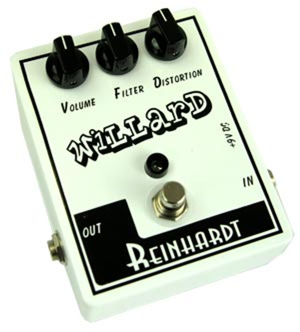 I found the Reinhardt Willard pedal to be a great choice for those seeking powerful, massive distortion sounds without being too buzzy or fizzy. It works well with most all types of guitars, single-coil or humbuckers. It sounds good when played through either an amp set on clean or set on slight breakup. At lower settings it makes a great overdrive as well. I really liked this one. On note: when trying pedals of this type, be sure that the amp is turned up into its power range. If you try a distortion pedal at bedroom volume, the result will be a very muddy sound. You need headroom from the amp to tighten the sound, so crank it up to get a true representation of how the pedal sounds.
