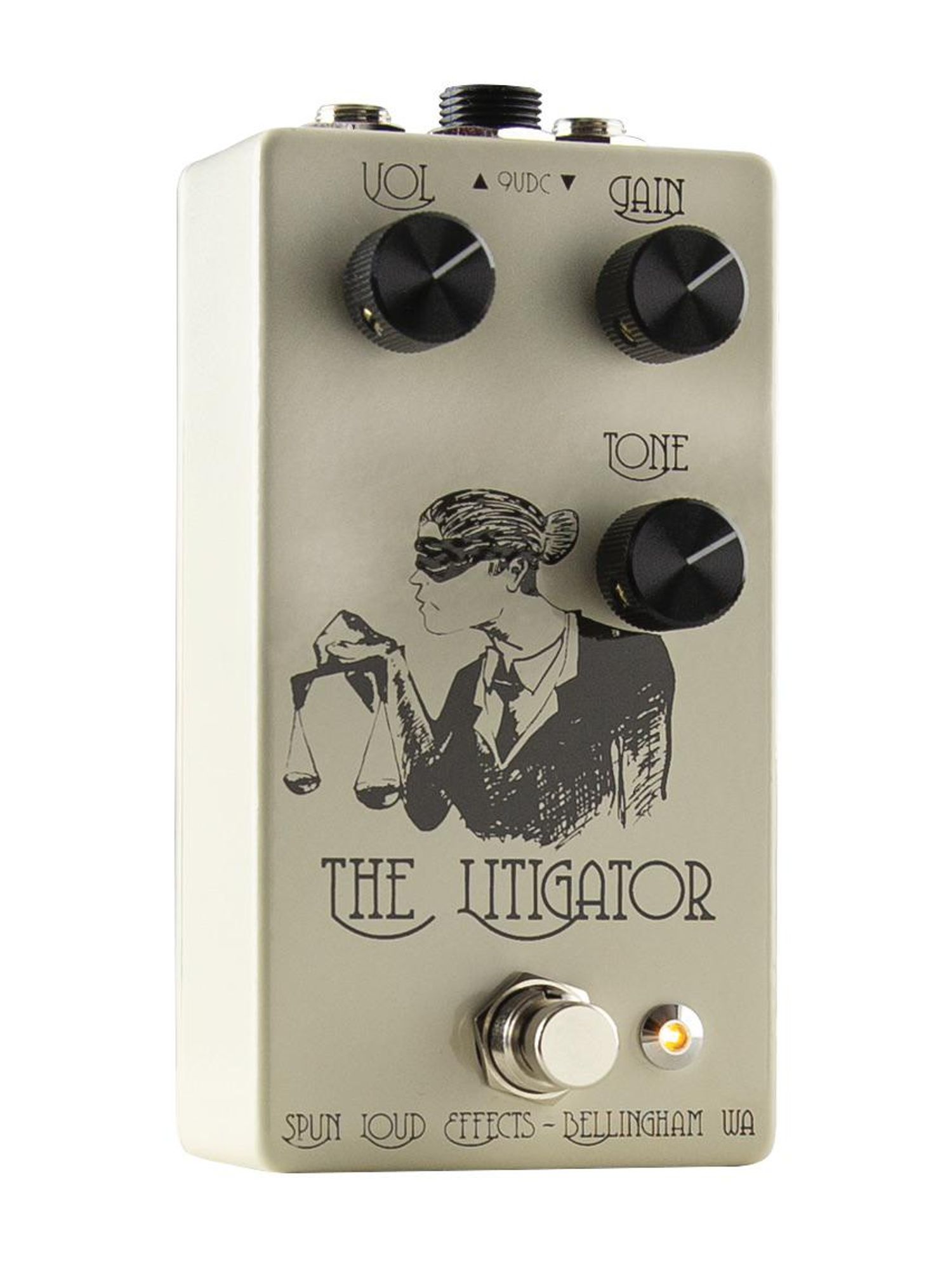 Sometimes a pedal sounds discernably more visceral from note one. When you look inside the Litigator, you can guess at why. There isn't much too it. And there's not much to suck tone away. Just about 30 clearly choice and carefully assembled components make up the circuit. That solid simplicity sums as an overdrive that's cracklingly alive, dynamic, and responsive. And while it can be sensitive, it shines especially bright when used in more immodest contexts.