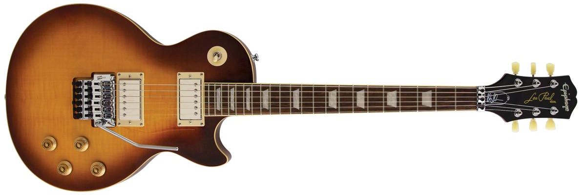 Outfitted with splittable humbuckers and a Floyd Rose with bridge-saddle transducers, Epiphone's more affordable version of the Rush legend's signature guitar dishes out a plethora of tones with style and comfort. The mahogany body is topped with highly figured maple, while around back there's an ergonomic belly carve. Reviewer Joe Charupakorn said humbucker-and-piezo mode "generated a massive 3-D experience," while humbuckers alone were "beefy and powerful, with plenty of clarity," and single-coil sounds had impressive bite without sacrificing volume.