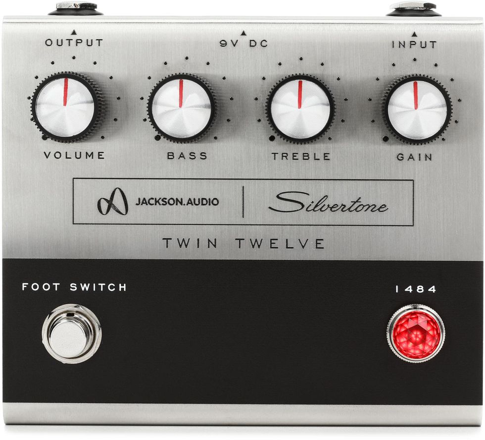 Now a collaboration between the revived Silvertone Guitars and Jackson Audio brings us the Twin Twelve pedal, an overdrive/EQ/booster designed to replicate the tone of the original 1484 piggyback tube amp. To accomplish this, Jackson essentially recreated the topology of the 1484’s preamp, effectively replacing vacuum tubes with JFETs. This method is common for many amp-in-a-box-style pedals. But the result here is a drive of many personalities.