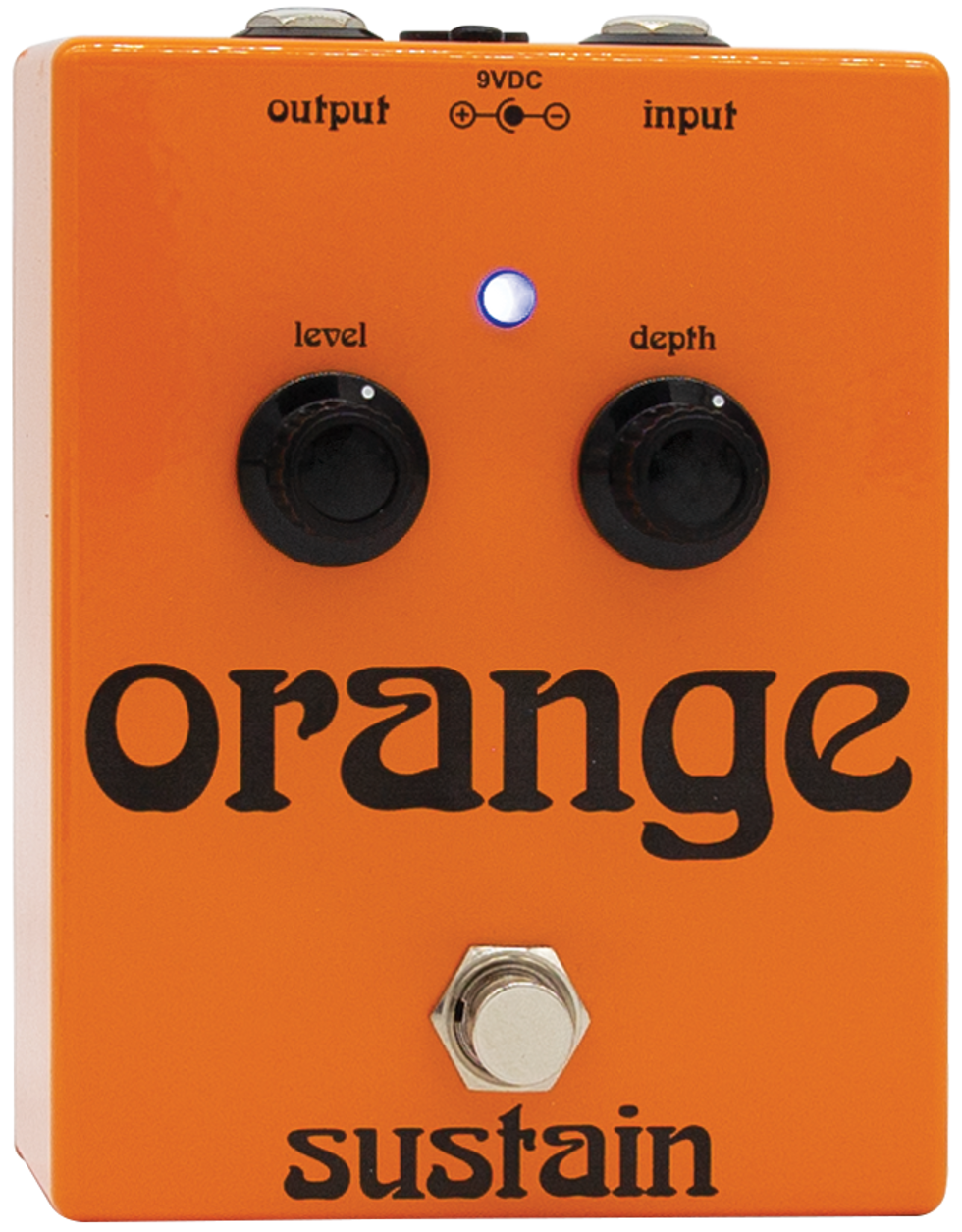 “Sustain” in the case of this new Orange pedal means compression. And this take on vintage optical compression spans familiar and more open-ended sounds and textures. For starters, the Orange Sustain, like the Phaser, adds very little additional noise to your signal, so you can add loads of sustain (via the depth control) and an ample helping of boost (from the level control) without adding an intolerable layer of hiss.