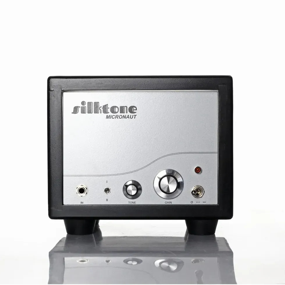 Already acclaimed for tube combo amps and their eponymous fuzz pedal, Sacramento-based Silktone recently released the clever Micronaut, a cuddly micro-amp with many more performance possibilities and range than its size or simplicity suggests. Despite the blocky dimensions and funky radio-age looks, the 9" x 7.5" x 6", 6 1/2-pound box houses a genuine tube amp, with tubes in both preamp and output slots. A single 12AX7 drives the former, while a single EL84 in the latter delivers approximately 4 watts of power. Coolest of all, perhaps, is you can use the Micronaut as an amp head, as a DI to your DAW or PA, or as a preamp to drive an amplifier.
