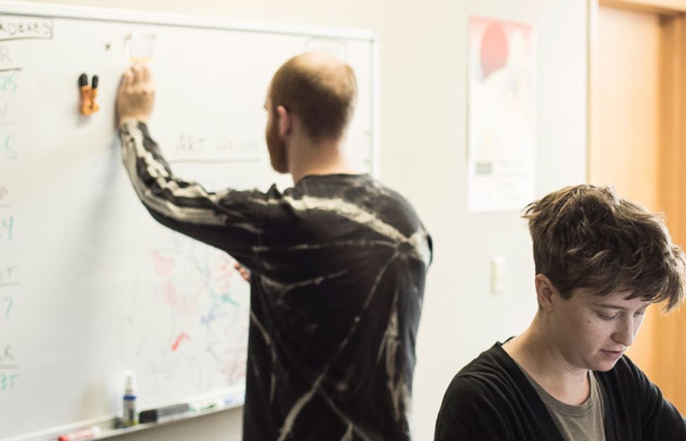 Zack Warpinski sketches plans for world domination. Or perhaps a new circuit.