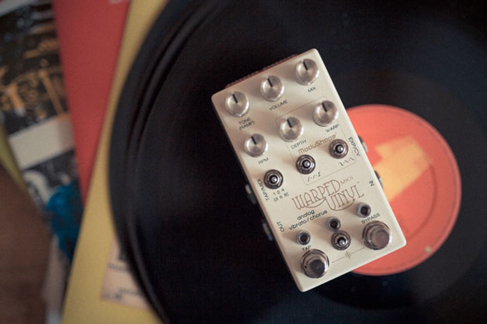 Warped Vinyl—Korte's first pedal—uses a digital LFO to control pitch vibrato.