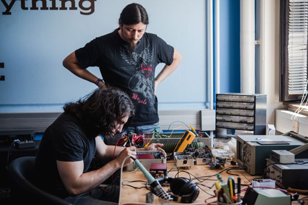 Darkglass mastermind Douglas Castro takes measurements on his first amplifier, a top-secret M900 prototype,