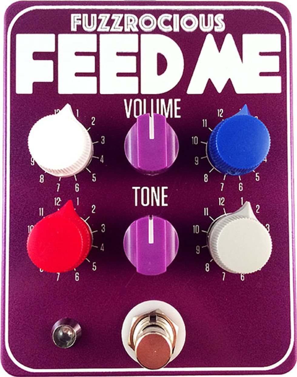 “I examined the components of 12 or 13 of the most popular Big Muff versions,” says Ryan of the Muff-inspired Feed Me EQ/preamp/tone-shaper. “We put those on rotaries and added some more as well.”