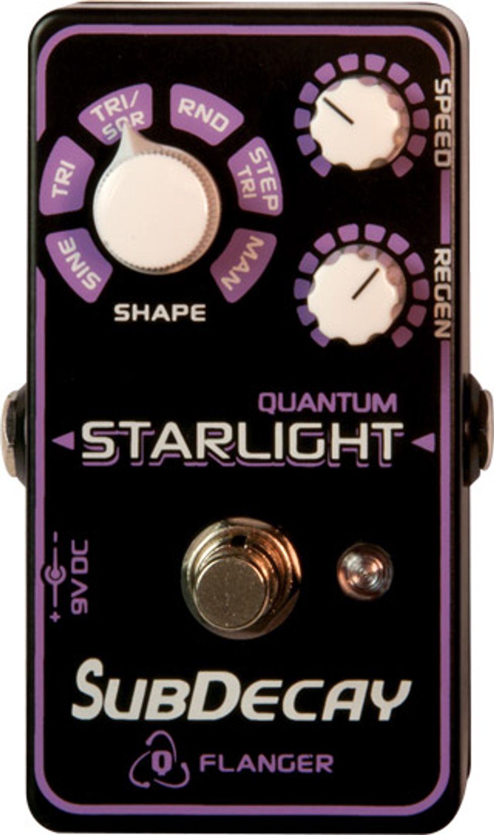 Oregon-based pedal maker SubDecay’s new flange pedal, the Starlight, takes its cue from vintage flange pedals like the classic A/DA Flanger by using analog bucket brigade devices (BBD) to produce the delayed signal. BBD circuitry is loved for its rich, vintage warmth, and the Starlight uses the MN3209 BBD chip (a similar circuit to the MN3010 chip found in the 1978 revision of the A/DA Flanger) that adds an authentic vintage quality to the sound.