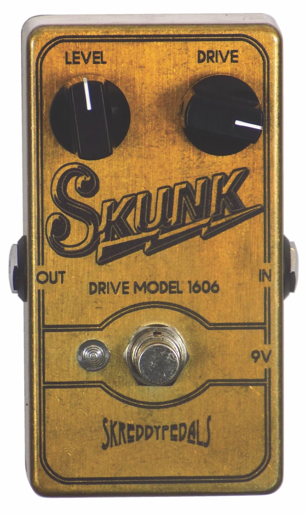 Skreddy’s Marc Ahlfs derives big-time inspiration from the sounds of Jimmy Page. In the form of the Skunk, Ahlfs focused on the dynamite and sometimes rather rude tones of Page’s Supro 1690T Coronado—the little beast behind Led Zeppelin I and the “Stairway to Heaven” solo. The Skunk certainly has those kinds of fangs. It’s midrange-y, a little compressed in the fashion of a Fender tweed, and readily ranges from boosted to almost-fuzzy fare.