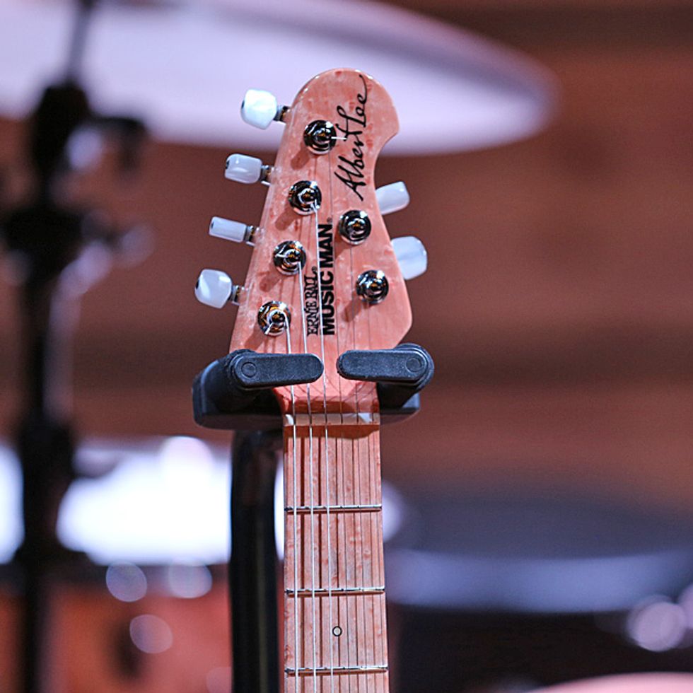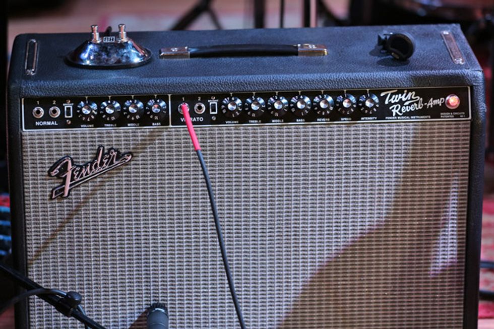Lee’s main amp is a Fender Tone Master head, but for backline gigs he usually asks for a ’65 reissue Fender Twin, which is what he used for the City Winery gig. (Lee’s been using the Korg A3 Multi FX processor for years and owns several various states of repair. The effects unit Lee had on this tour quit working, so until the replacement unit arrives, Lee is just plugging straight into his amp sans effects.)
