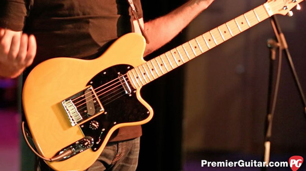 Because Timmons travels so much, it’s important to have a durable pedalboard that covers all his tones but weighs less than 50 pounds—case included. Timmons is a total cable guy and his signal flow starts with a Dunlop Cry Baby Wah before heading into the centerpiece of his board, a GigRig G2 switching system. Included in the loops of the G2 are a Sonic Research Turbo Tuner ST-200, Dunlop Volume X, Strymon TimeLine, Carl Martin Andy Timmons Compressor Limiter, GNI Analog Stereo Dual Chorus, a beat-up Ibanez TS-808 Tube Screamer, MXR Phase 90, and a JHS AT (Andy Timmons) Signature Channel Drive. Tucked underneath the top row of pedals are a Wampler Velvet Fuzz, GNI Octa Fuzz, an Electro-Harmonix POG, a Keeley-modified Boss Blues Driver, and finally a modded JHS Angry Charlie.