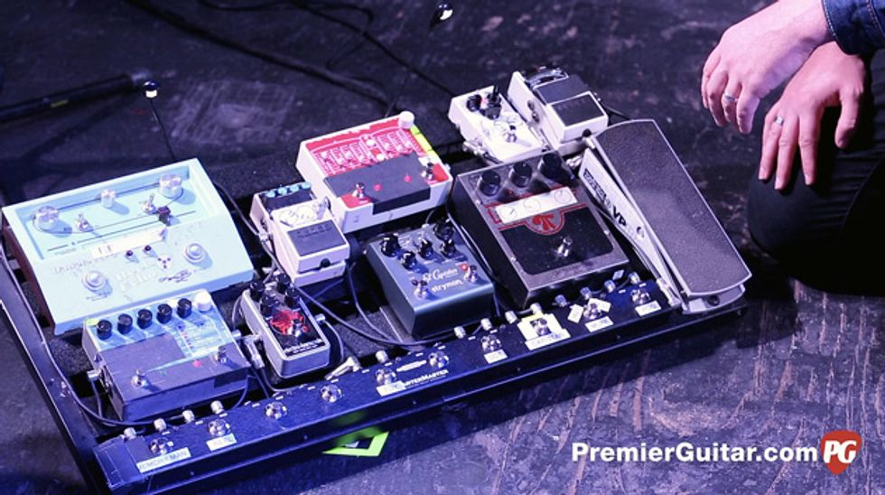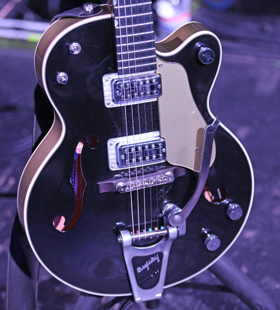 On the other end of the spectrum, Marsden uses a stock Gretsch G6118T-LTV 130th Anniversary Junior that is specific to what he calls “phase two” of the band’s sound—centered around their third album Himalayan—which was Gretsch semi- and hollowbodies into cranked Fender combos.