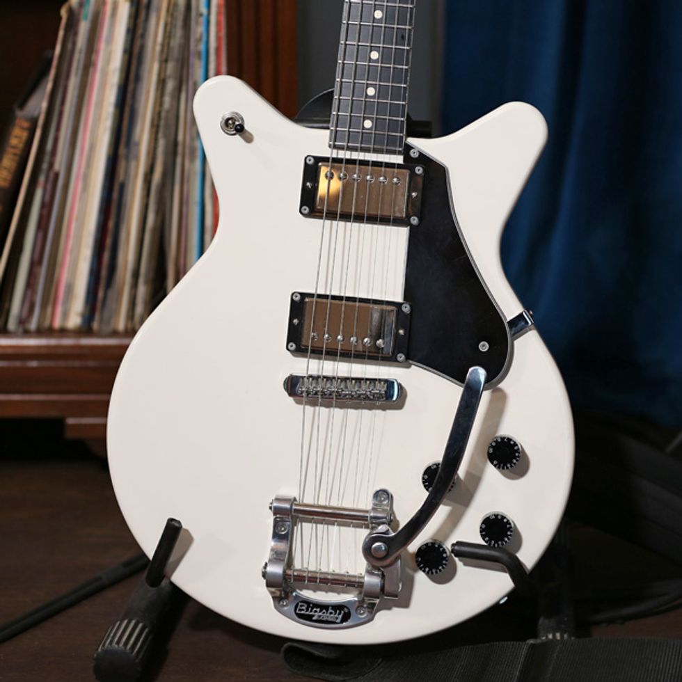 Another iteration of Denison’s Chessie is this golden P-90-equipped horse that saw plenty stage time in alt-country settings when he played with Hank III and the Legendary Shack Shakers. The P-90s are custom-wound by EGC’s Kevin Burkett and Denison surmises that the metal mount for the pickups inside the guitar offer additional shielding that eliminates all noise and buzz while still unleashing their signature girthy snarl, rasp, and bite.