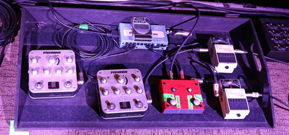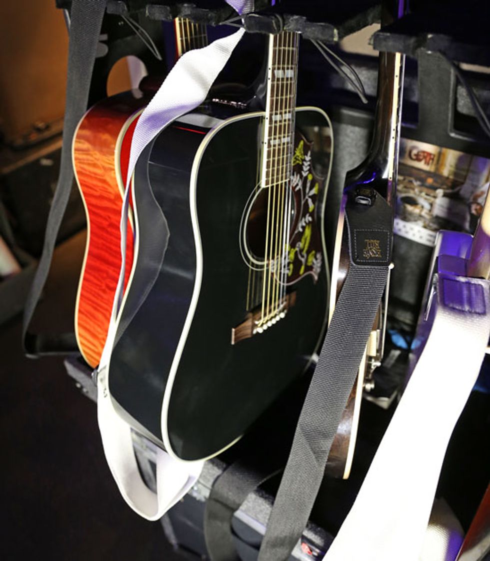 After having broken a few guitars during shows, Turner wanted something a bit more road worthy. Turner now tours with two Gibson Hummingbirds—this beautiful orange-burst has been his main one for a few years.