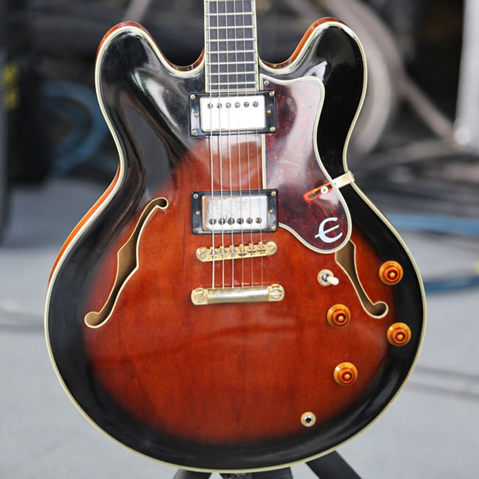 Guitarist Brian Aubert and bassist Nikki Monninger (above left) talk shop with PG’s Chris Kies before their opening set for Third Eye Blind at Nashville’s Ascend Amiptheater.