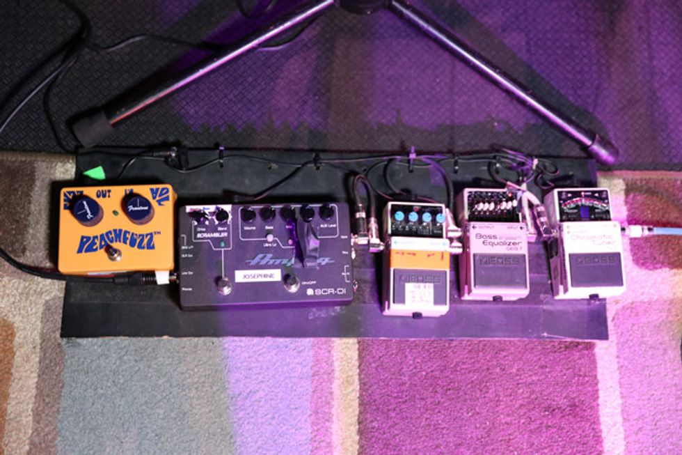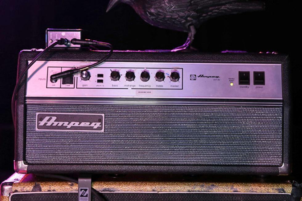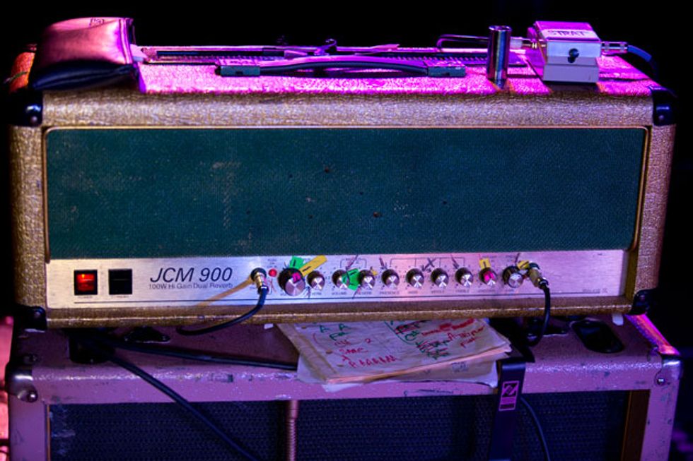 Zach loves his Sovtek Mig 60 head, which he plays through a cab he built himself at a pipe-organ shop in Denver. Every glue joint is lined with thin leather for maximum air tightness, and it’s stocked with Celestion G12M Greenback speakers.