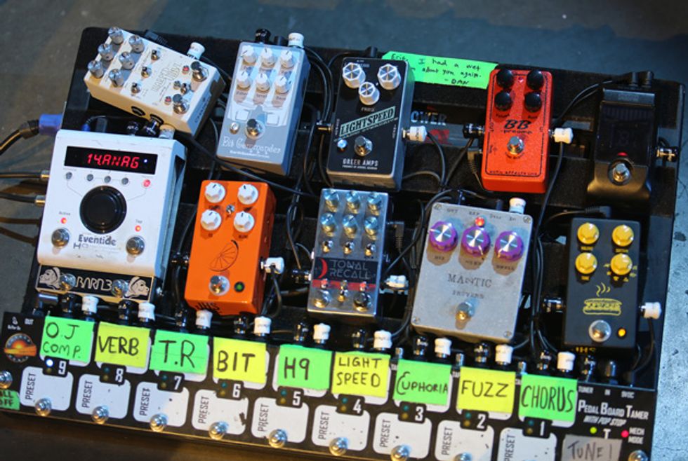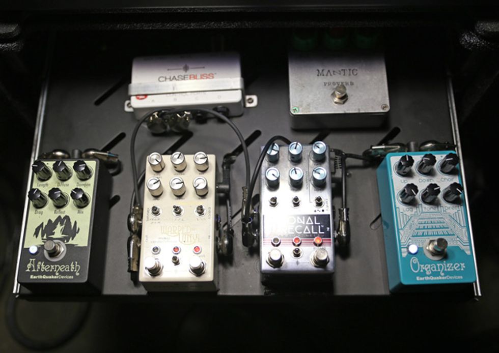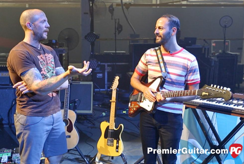 PG was invited to a practice space in Nashville during Young the Giant’s rehearsals for the band’s upcoming Home of the Strange tour. Guitarists Eric Cannata (above right) and Jacob Tilley hang for a long time explaining how custom guitars and a bevy of pedals play into their live sound.