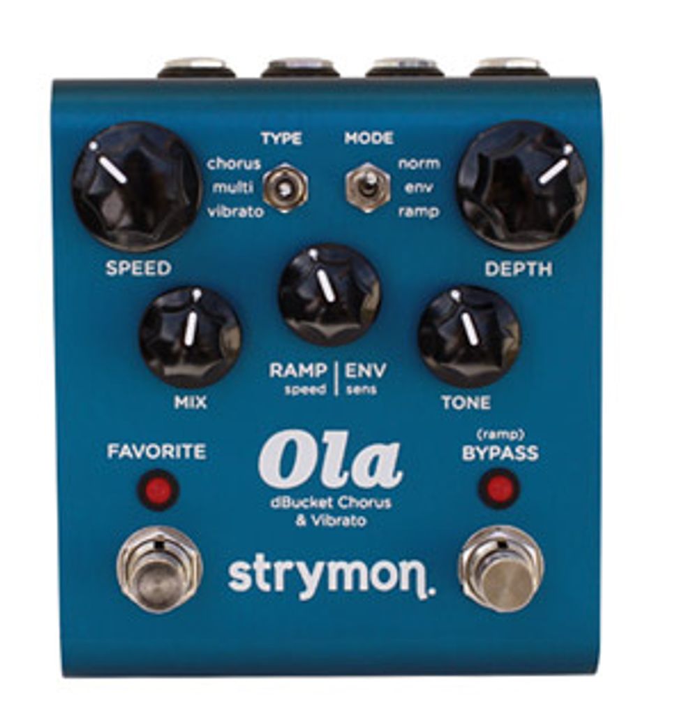 In addition to the chorus mode, two more modulation types can be selected with the Type switch: Multi is a three-phase multi-delay chorus (as opposed to the standard single delay) that avoids the warble associated with older analog chorus pedals, and the last is for vibrato. The Mode control is unique in that its effect varies depending on your playing style. In the envelope position, the circuit reacts to your pick attack. The lower you set the Ramp|Env knob, the harder you have to pick to hear the effect (kind of like how a noise gate’s Threshold knob works). In the ramp position, the effect is only activated when you hold down the footswitch. Imagine playing a solo or a single-note riff and throwing in a little fast vibrato for only one or two notes. It’s a useful feature that inspired some pretty creative moments when I was playing around with it. Mode’s ramp and env modes can be tailored with the Ramp|Env knob. With Mode set to ramp, the speed of the effect increases the further clockwise you turn Ramp|Env. With Mode set to env, the envelope opens with less pick attack the more you crank Ramp|Env. Because the pedal is so versatile, the Favorite footswitch is included here, too, so you can save your go-to setting.