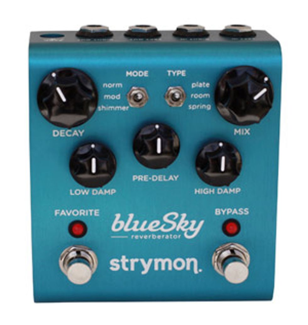 Shimmer mode, on the other hand, leaves nothing to be desired. The upper octave crept in ever so slightly when I was playing either chords or single notes, and using it with the spring setting yielded my favorite sounds of all. Playing with the Mix and High Damp controls maxed out was ghostly soundscape heaven—just the thing for guitarists from the Robert Fripp school. The effect is almost like a volume swell. When used with the room reverb, it’s very reminiscent of the long-discontinued (but very coveted) Boss PS-3 Pitch Shifter in mode 7. In fact, I like the Blue Sky’s shimmer mode even because you can dial in just the right amount of highs and lows.
