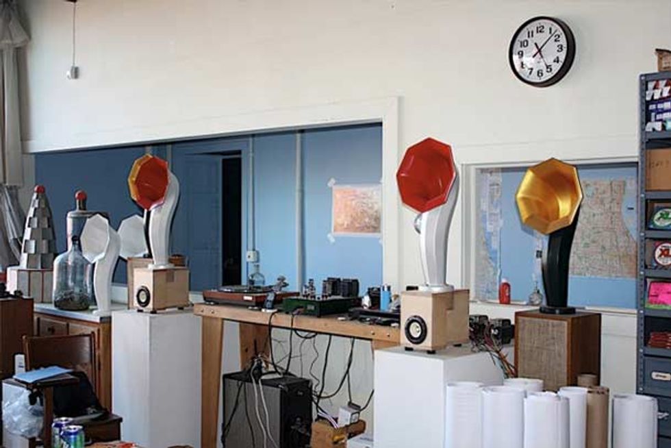 These Specimen horns, powered by an EL34 hi-fi stereo amplifier connected to an iPod, provided great music for all three days of the weekend seminar. The amplifier is Schneller’s own version of a design by Joseph Esmilla (posted on the Angela Instruments website), and Specimen now offers classes in building it.