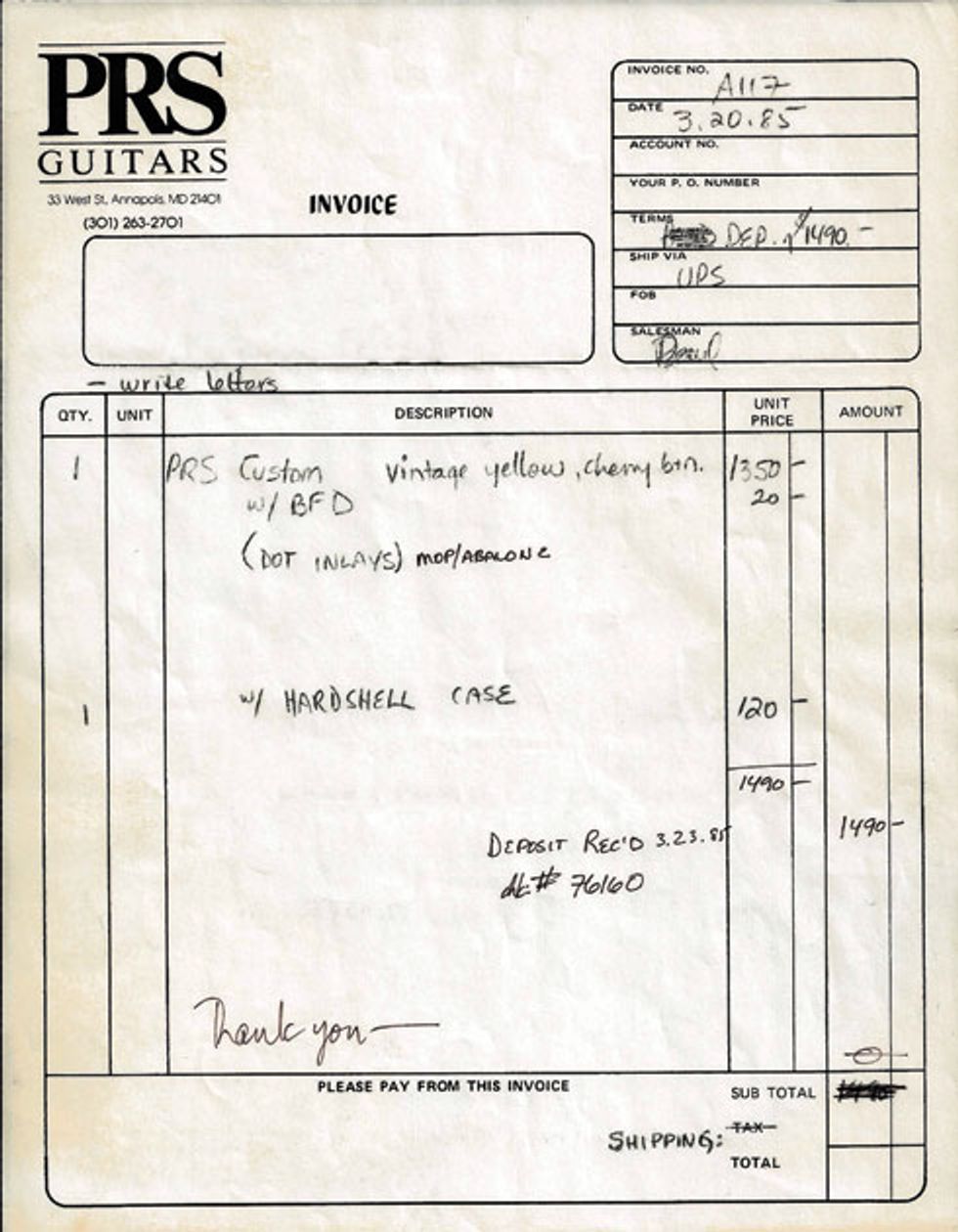 The sources for this article are The PRS Guitar Book by Dave Burrluck, the original invoice and paperwork for the guitar, and a recent letter from Paul Reed Smith himself.