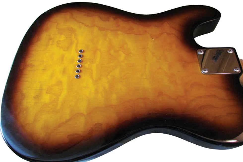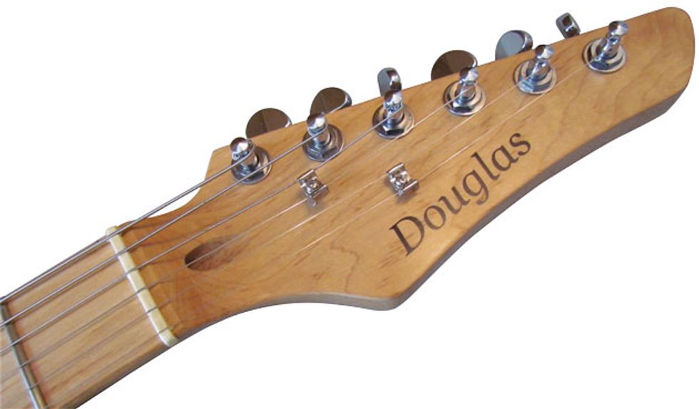 I have to confess that the finishes on most sunburst Teles make me yawn, but I found this Douglas T-style on eBay about a year ago, and its highly figured ash burl front and back just looked cool. Week after week the seller listed it with a BIN (buy it now) price of $169 plus $35 shipping, with no takers. I kindly informed him that these sell brand new for $129.99 plus $19 shipping from an import company in California. After several weeks, I emailed again with a lowball offer, but he held firm, explaining what a great guitar it was and that he’d already spent $50 to have a tech set it up for super-easy playing.