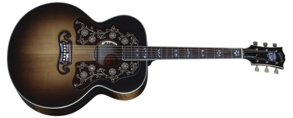 Nashville, TN (December 5, 2013) -- After years of design and development overseen by the artist’s personal guidance, The Bob Dylan Autographed SJ-200 Collector’s Edition is an exact replica of Bob’s personal highly-customized SJ-200. Fashioned from highly figured Indian rosewood and AAA Sitka spruce. The headstock features the artist’s eye logo inlaid in mother-of-pearl with a Bella Voce mother-of-pearl inlay in the fret board. The double pick guards are ornately decorated with an inlay of abalone.