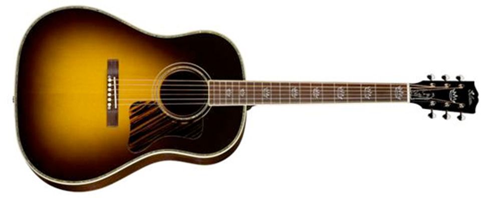The Randy Scruggs Advanced Jumbo is an elegantly appointed acoustic guitar from the luthiers of Bozeman, Montana. Made to the proportions of the Advanced Jumbo round-shouldered dreadnought, with solid premium Sitka spruce top and solid rosewood back and sides, an advanced scalloped X-brace, vintage sunburst finish, and up-market adornments such as abalone trim and rosette and mother-of-pearl fingerboard crowns, the Randy Scruggs Model packs the one-two punch of looks and tone that make it a fitting testimony to its namesake’s achievements. Add to these its bone nut and saddle and a Fishman Matrix pickup system to translate all that stellar tone to the masses, and it’s a guitar primed to take place of pride at the center of a collection, or in the hands of a hard-working artist. Only 100 Randy Scruggs Model guitars will be produced by Gibson, and each one comes with a formfitting hardshell case with plush purple lining, an owner’s manual, and Gibson’s Gold Warranty. MSRP $4515.