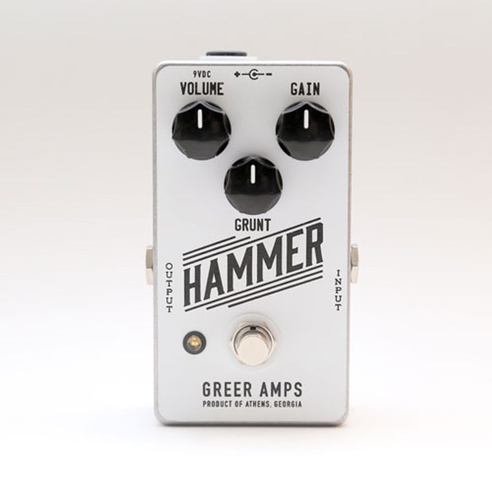 The Hammer is a wheelhouse classic for Greer. The Hammer boasts a wide range of fuzz and distortion tones with some extreme setting modes that push into unique sonic territories. Used more conservatively, the Hammer offers very convincing distortion and fuzz tones that apply universally to gain-inspired guitar parts. As the interactive GRUNT control is used in tandem with variable gain settings, the Hammer then spits out a chewed-up fuzz tone with a heavy taste of squish and gating. Pushed yet further, the Hammer is capable of an 8-bit style tone with heavy intermodulation and a dynamic clipping impression (as the Hammer is pushed off the rails).