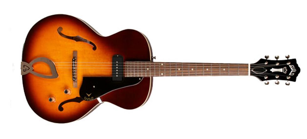 Santa Monica, CA (January 13, 2014) -- Guild continues to build out their Newark St. Collection with new options on popular models. For the first time in decades, guitarists can easily get a hold of a Guild Starfire III, Starfire IV, or Starfire V in a sleek, Black finish. This highly desired option was only available for a short period of time, and continues to be one of the most sought after on the Starfire models. All three of these guitars are built with mahogany tops, backs, and sides, have a comfortable, extra thin body depth, and include a hardshell case. Guild’s “Anti-Hum” dual-coil neck and bridge pickups are replicas of the original 1960s pickups, featured on all three models. The Starfire III is the only fully hollow model of the three, boasting a graceful single Florentine cutaway and a Guild vibrato tailpiece. The Starfire IV is a semi-hollow guitar with a double cutaway, most famously paired with Buddy Guy in the 1960s, and more recently, in the hands of indie artist Feist. The Starfire V is also a semi-hollow guitar with a double cutaway, block inlays, additional master volume knob, and comes equipped with a Guild vibrato tailpiece. The Starfire III, IV, and V remain the heart of the Newark St. Collection, offering Guild’s classic vibe and vintage tone.