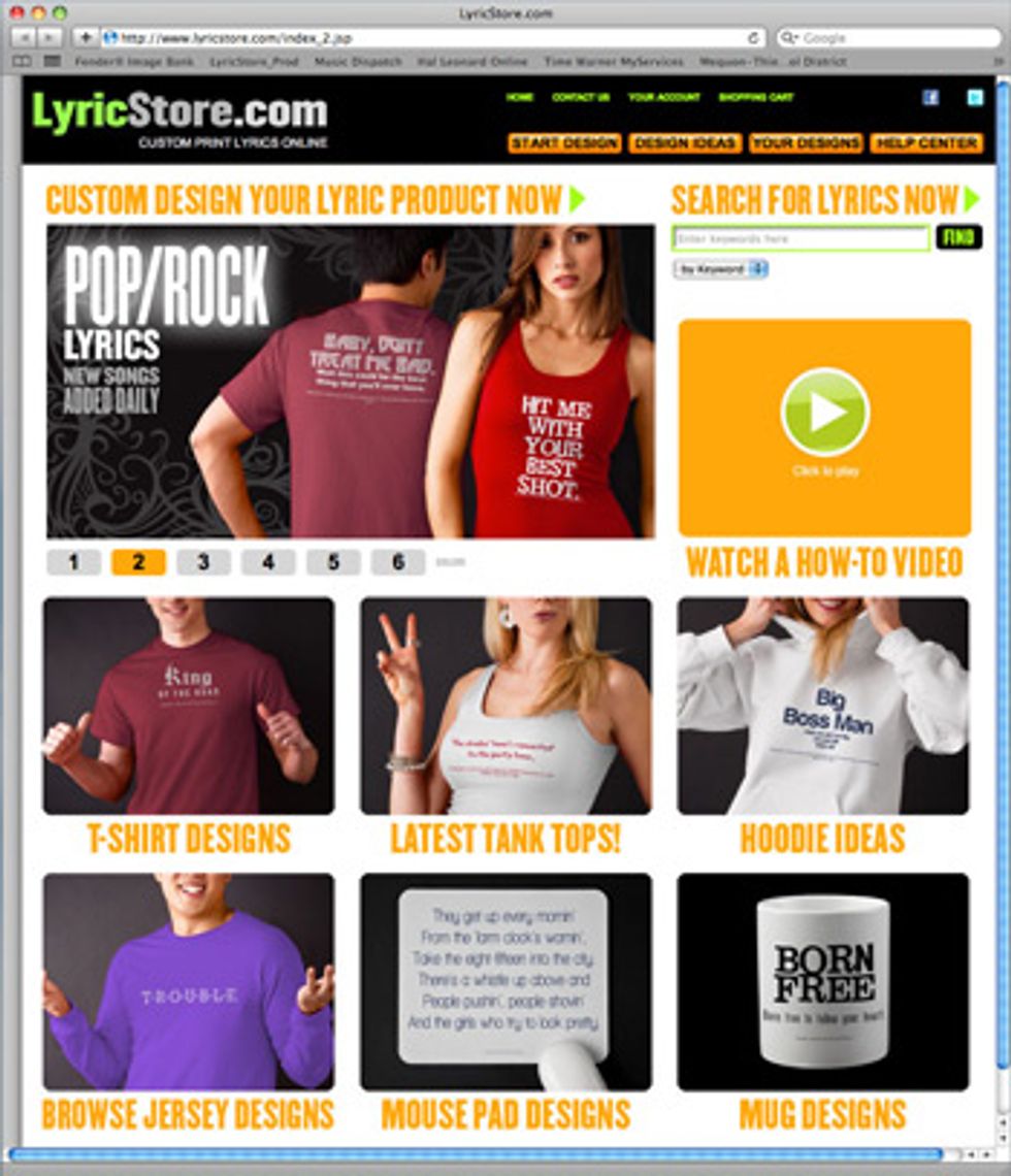 Milwaukee, WI (July 22, 2010) -- That catchy song lyric that’s always in your head can now be on your t-shirt. Or your coffee mug. Or your mouse pad. The world’s largest and most innovative music print publisher, Hal Leonard Corporation has just launched its latest website, LyricStore.com, the only site where you can print accurate, licensed lyrics on a wide variety of products.